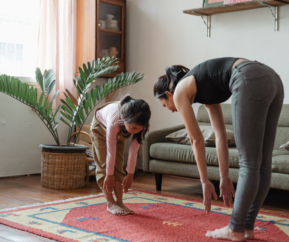 Een paar korte en makkelijke oefeningen samen te doen in drukke tijden. Ze helpen om je hoofd tot rust te brengen, te ontspannen en weer helemaal in het hier en nu te komen.
